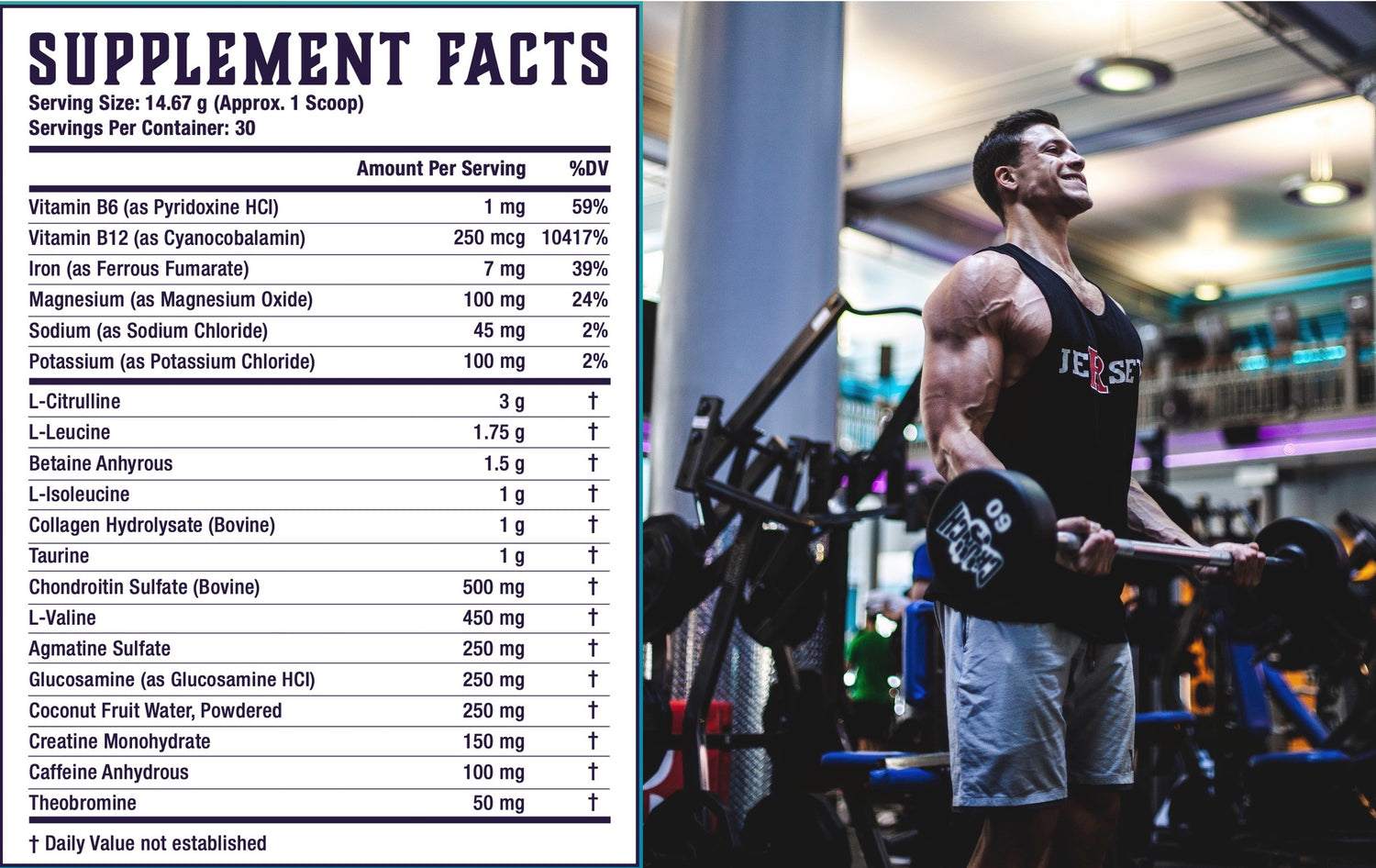 With Samson, you'll get true energy from vitamins and minerals that not only lasts throughout your workout, but also boosts your day with less caffeine.